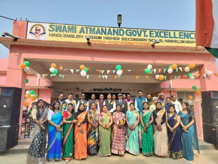ओमनारायण लखनपुर— अंग्रेजी एवं हिंदी उत्कृष्ट विद्यालय स्वामी आत्मानंद निम्हा में 77वां गणतंत्र दिवस हर्षोल्लास, गरिमा एवं देशभक्ति के वातावरण में मनाया गया। विद्यालय परिसर को राष्ट्रीय ध्वज, रंग-बिरंगी सजावट एवं देशभक्ति नारों से सुसज्जित किया गया था, जिससे पूरा वातावरण उत्साह और राष्ट्रप्रेम से ओत-प्रोत नजर आया। प्रतिभागी विद्यार्थियों को कॉपी पेन देकर प्रस्तुत किया गया।