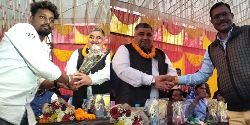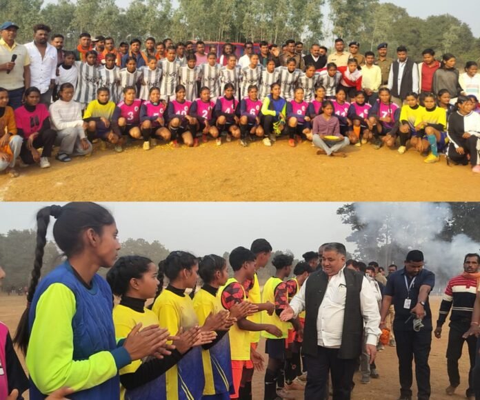 ओमनारायण – सरगुजा जिले के लखनपुर विकासखंड क्षेत्र ग्राम पंचायत पोतका में पंचायत स्तरीय फुटबॉल टूर्नामेंट का आयोजन किया गया इस अवसर पर मुख्य अतिथि पर्यटन एवं संस्कृति मंत्री राजेश अग्रवाल , विशिष्ट अतिथि नगर पंचायत अध्यक्ष प्रतिनिधि दिनेश साहू, मंत्री प्रतिनिधि राकेश अग्रवाल, शक्तिकेंद्र प्रभारी लक्ष्मण साहू, उदयपुर थाना प्रभारी शिशिरकांत, अवधेश यादव शामिल रहे समिति के सदस्यों के द्वारा कैबिनेट मंत्री जी का फूल माला पहनाकर स्वागत किया गया इस दौरान विभिन्न ग्राम पंचायत से आए 16 टिम के खिलाड़ियों के द्वारा फुटबॉल मैच खेला गया वहीं फाइनल मुकाबले में पोतका एवं जमदेई के बीच जबरदस्त मुकाबला रहा जिसमें प्लांटी में पोतका के खिलाड़ी विजयी रहीं एवं उपविजेता जमदेई के फुटबॉल खिलाड़ी रहें ।