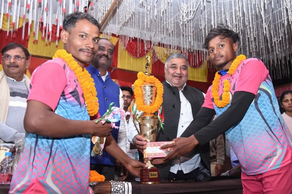 प्रथम विजेता टीम को 20 हजार रुपये और उपविजेता टीम को 15 हजार रुपये एवं सील्ड मेडल देकर सम्मानित किया गया साथ ही लड़की टीम चरचा कोरिया जिला एवं मां महामाया कोरबा गर्ल्स टीम के द्वारा भी फुटबॉल प्रतियोगिता का जबरदस्त मुकाबला रहा जिसमें मां महामाया कोरबा की टीम विजयी रही दोनों टीम को पुरस्कार देकर सम्मानित किया गया कैबिनेट मंत्री राजेश अग्रवाल ने सभी खिलाड़ियों को बधाई एवं शुभकामनाएं दिए तथा मंत्री जी ने खेल मैदान को समतलीकरण सहित अन्य कार्य करने का आश्वासन दिया है